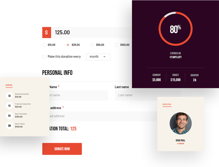 Receiving donations and raising awareness for a special cause has never been simpler. With Fundor , you have most of the content already available, you just need to empower your branding.